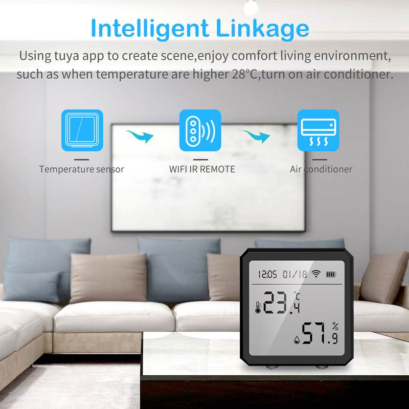 This Wi-Fi-enabled Temperature and Humidity Sensor is a smart monitoring device designed to track and report real-time environmental conditions in homes, offices, or other indoor spaces. It connects seamlessly to the "Smart Life" app (and supports third-party voice assistants like Amazon Alexa and Google Assistant), enabling remote monitoring, customizable alerts, and automated smart home integrations based on temperature or humidity changes.