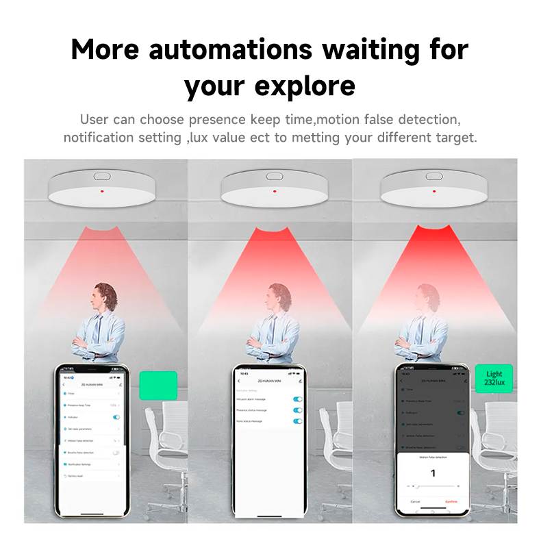 This is an advanced 2.4GHz radar-based human presence sensor designed to detect not only motion but also subtle movements (inching) and even human breathing. It is ideal for smart lighting, security, energy management, and automation systems in residential, commercial, and industrial environments. The sensor supports Zigbee 3.0 for seamless integration into smart home ecosystems.