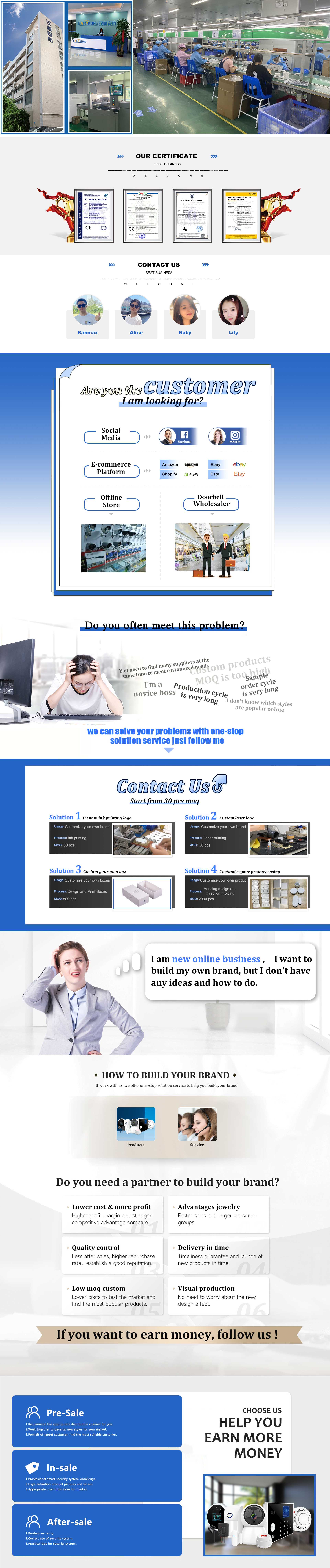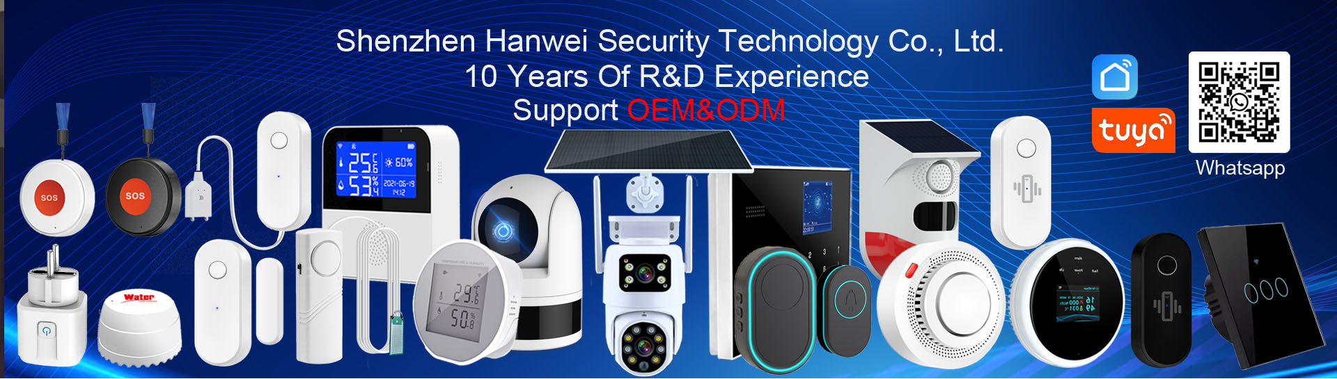 Shenzhen Hanwei Security Technology Co., Ltd., a high Tech enterprise engaged in powered by tuya smart home products, as a global OEM ODM smart home security AI IOT smart product supplier and PCBA solution provider. We strive to independently design R&D smart devices. We are specializing in smart alarm systems and sensors, security cameras, smart doorbell, smart switches, smart door locks and smart home appliances. Our strategic associated factory has more than 160 employees occupying 3000 square meters four large assembly lines. Our factory is specializing in smart alarm systems and sensors, security cameras, smart doorbell, smart switches, smart door locks and smart home appliances, all kinds of smart home appliances, we can do OEM order with your requested function design and build your own APP with your brand name. We are dedicated to providing safe, reliable and easy to use products by strictly implementing ISO9001 quality management system. The products are in compliance with CE, Rohs, EN and FCC etc, our clients are including the world's top valuable brand distributors and online store sellers in over 100 countries and regions. Welcome to contact Hanwei Security for premium quality smart home products. Our experienced sales will offer you professional service.