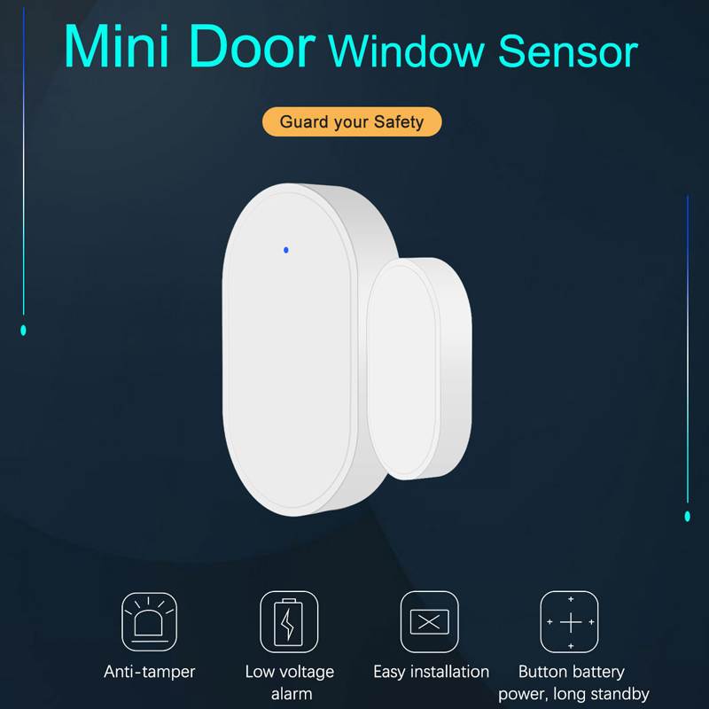 This is a compact and wireless door/window sensor designed for home security and automation. It monitors the open/close status of doors and windows and triggers an alarm and notifications via a connected hub system when unauthorized opening is detected.