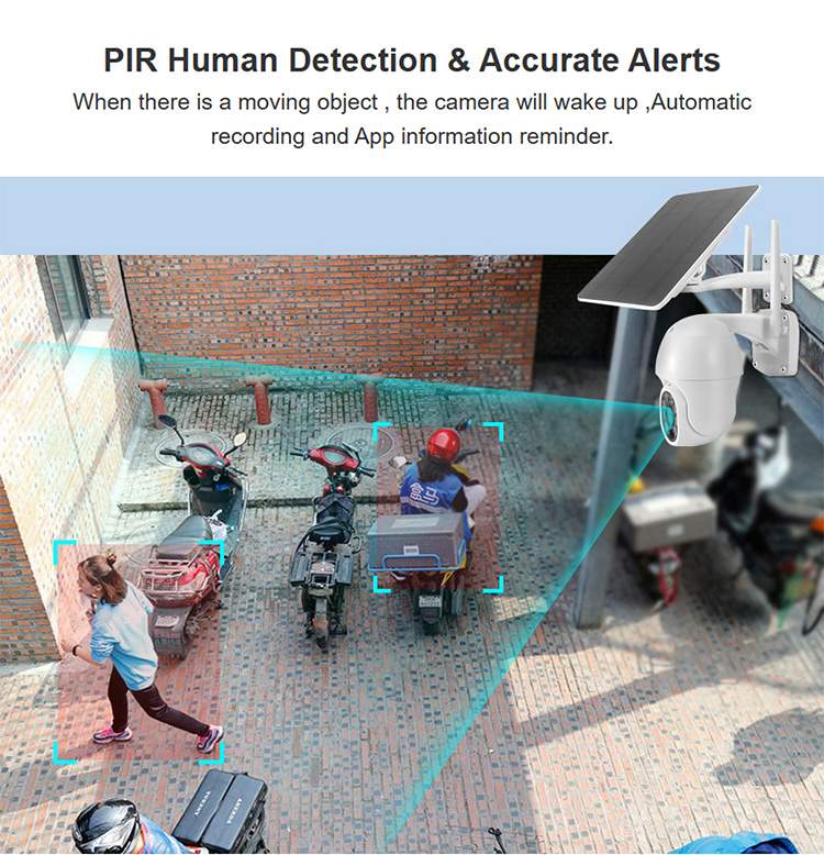 3.Humanoidanalysis:whenthemonitoring changes,thecamerawll intelligenly analyze the humanoid and push the alarm information to the user's mobile app. Within one second, the camera will start to shoot video,and at the same time,a voice warning will be issued:"you have broken into the monitoring alert area, please leave immediately!" And play sirens to drive the intruders away.( For other applications,you can customize the warning sound,such as private residential areas,fish ponds, orchards,danger warning occasions,forest fire prevention,warehouses,construction sites and other places. Please indicate the demand when placing an order, otherwise it is the default voice plus alarm sound when leaving the factory.)