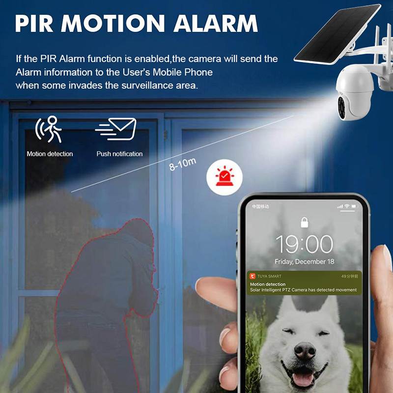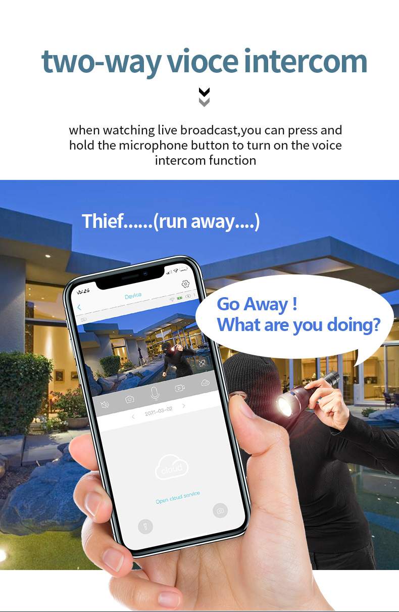 3.Humanoidanalysis:whenthemonitoring changes,thecamerawll intelligenly analyze the humanoid and push the alarm information to the user's mobile app. Within one second, the camera will start to shoot video,and at the same time,a voice warning will be issued:"you have broken into the monitoring alert area, please leave immediately!" And play sirens to drive the intruders away.( For other applications,you can customize the warning sound,such as private residential areas,fish ponds, orchards,danger warning occasions,forest fire prevention,warehouses,construction sites and other places. Please indicate the demand when placing an order, otherwise it is the default voice plus alarm sound when leaving the factory.)