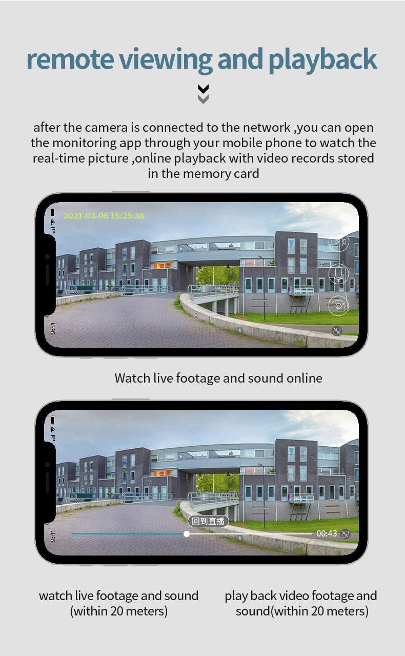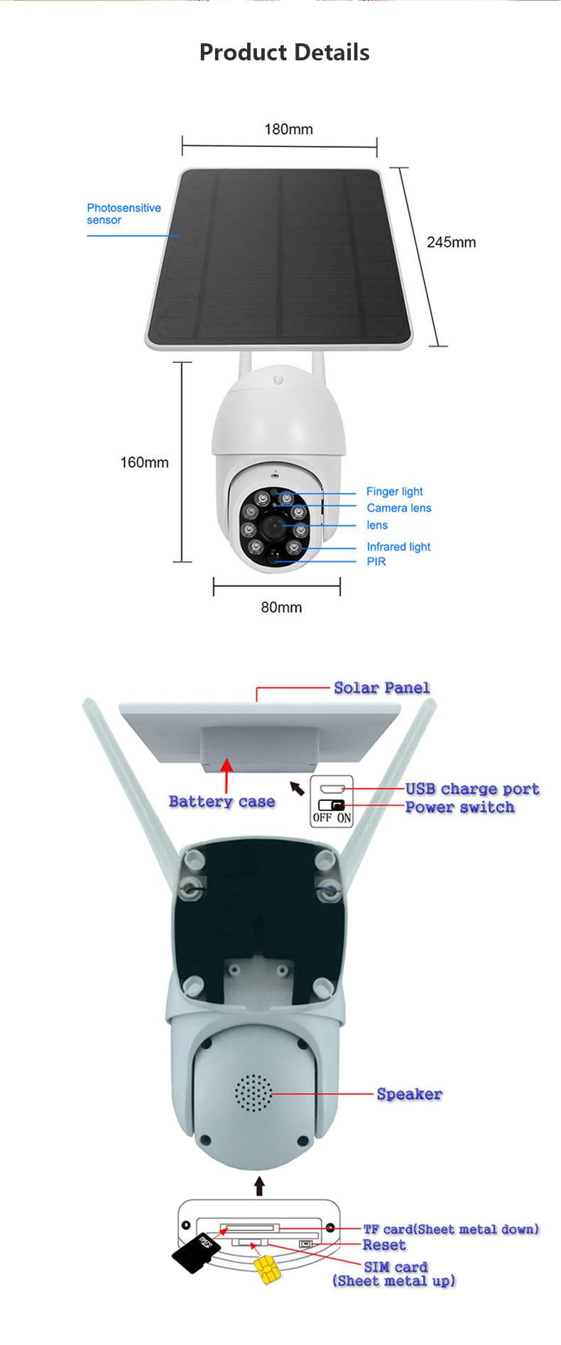 5. Support PIR wake-up,mobile phone remote wake-up camera enter working mode.