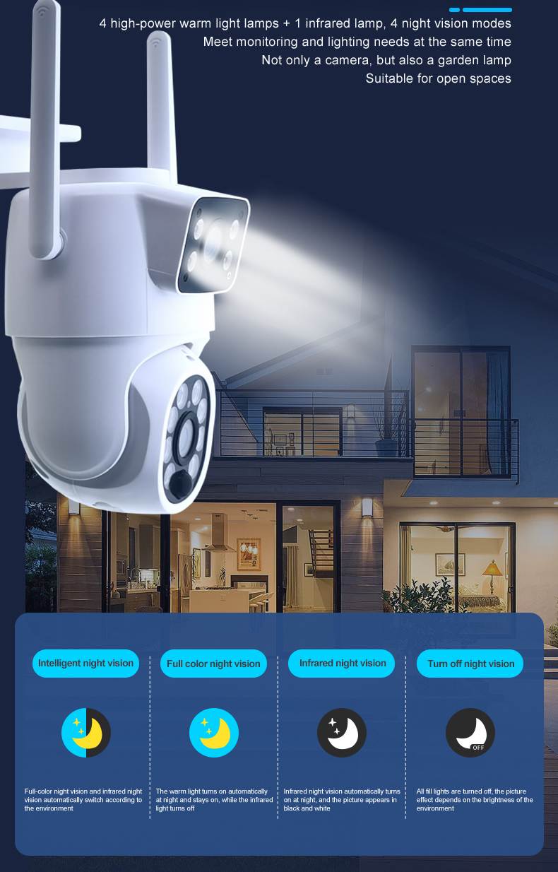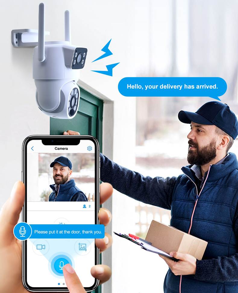 3.Humanoidanalysis:whenthemonitoring changes,thecamerawll intelligenly analyze the humanoid and push the alarm information to the user's mobile app. Within one second, the camera will start to shoot video,and at the same time,a voice warning will be issued:"you have broken into the monitoring alert area, please leave immediately!" And play sirens to drive the intruders away.( For other applications,you can customize the warning sound,such as private residential areas,fish ponds, orchards,danger warning occasions,forest fire prevention,warehouses,construction sites and other places. Please indicate the demand when placing an order, otherwise it is the default voice plus alarm sound when leaving the factory.)
