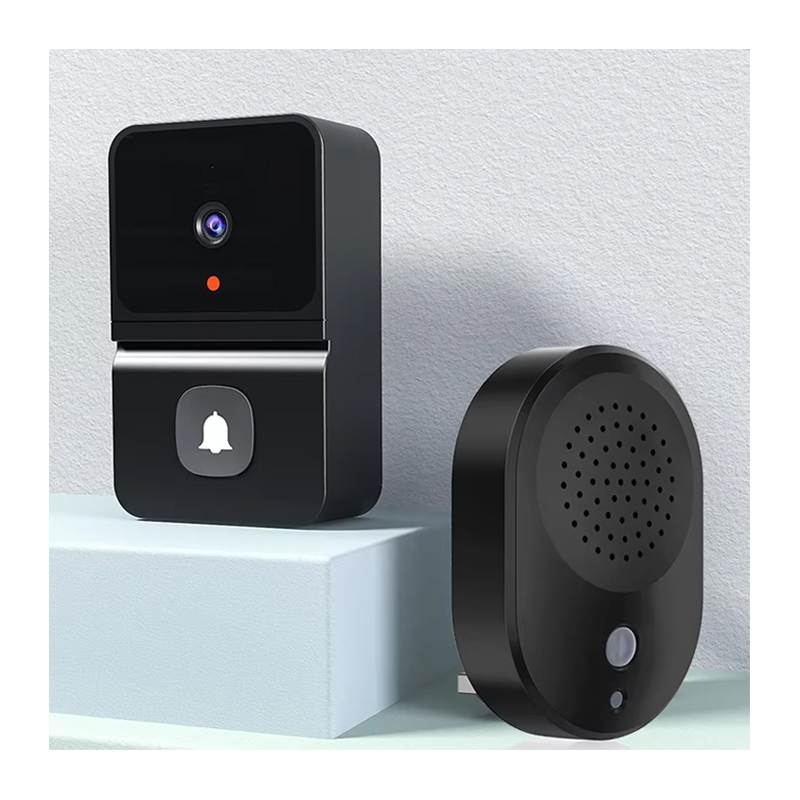 This is a WiFi-enabled video doorbell that works with the Kement APP. It allows users to receive video calls on their phone when the doorbell button is pressed. It includes a wireless indoor chime (DingDong Device) that must be paired with the doorbell. The doorbell features a built-in camera, speaker, and status indicator light. It is charged via a Type C USB connector.