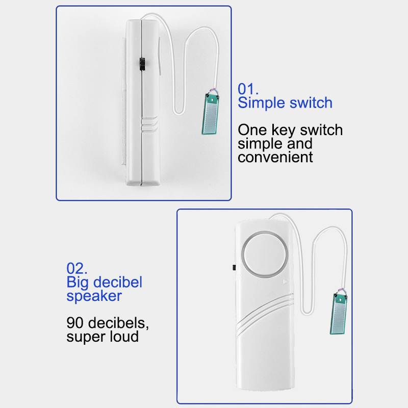 Versatile Placement: Designed for use in potential flood-prone areas (bathrooms, basements, kitchens, boats, garages, etc.). Triggers an immediate loud alarm upon detecting even minor water leaks.
