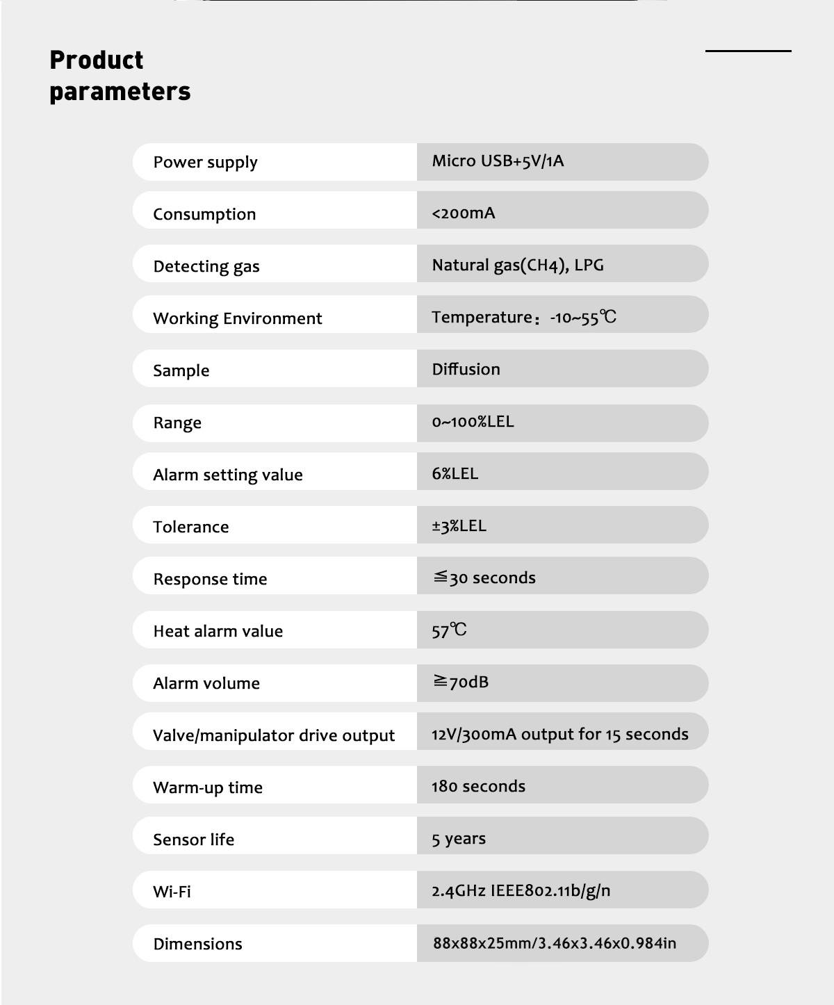 | Detecting gas | Natural gas(CH4), LPG |