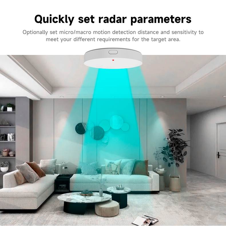 This is an advanced 2.4GHz radar-based human presence sensor designed to detect not only motion but also subtle movements (inching) and even human breathing. It is ideal for smart lighting, security, energy management, and automation systems in residential, commercial, and industrial environments. The sensor supports Zigbee 3.0 for seamless integration into smart home ecosystems.